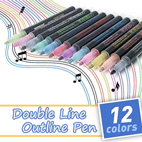 Outline pens?anyuke 12 colours double line outline pens gift card writing drawing pens for birthday greeting photo album painting diy art crafts