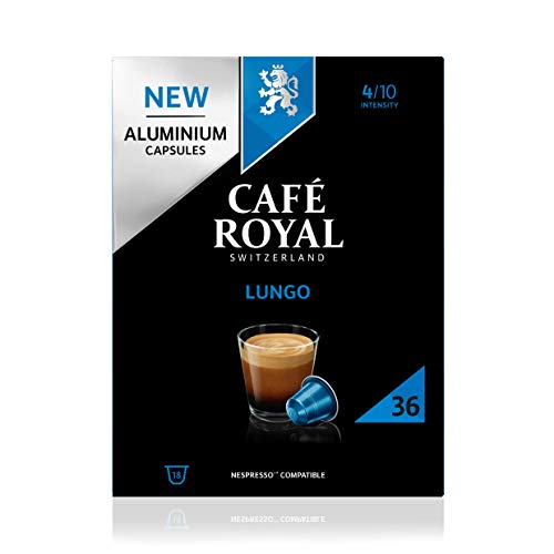 You can buy Cafe royal lungo 36 nespresso * compatible aluminium pods online here in our comparator, with the best prices on offer. The sale price is€ today with the confidence that Amazon gives in its after sales service. Its price of £ is a great offer , please do not forget to leave your comments sip the product to help others.