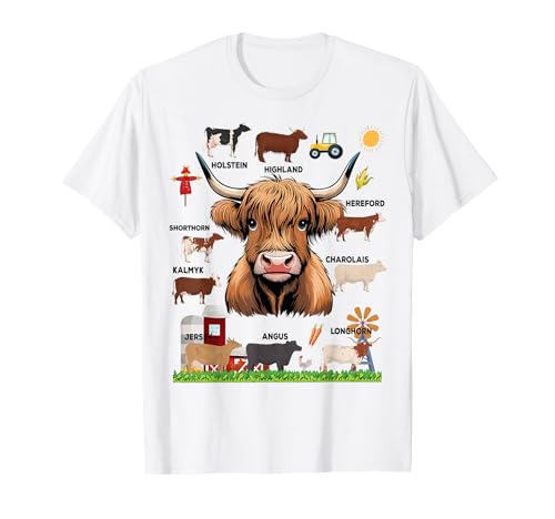 Types of cows farm idea for kids & cow farmer costume t-shirt