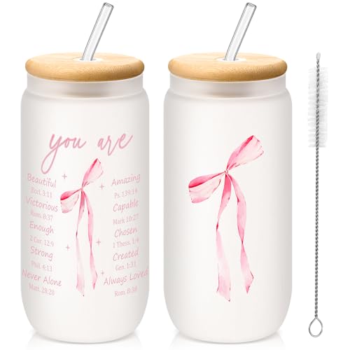 The sale price of Mother's day pink bow christian cup with lid and straw,16 oz coquette bible verse glass tumbler has remained stable at in recent times, there has been no change. As for offers on this product from yetene, the price of is similar in all stores in the network, without major differences.