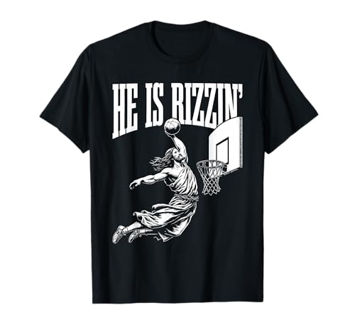 He is rizzin funny jesus basketball meme easter christian t-shirt