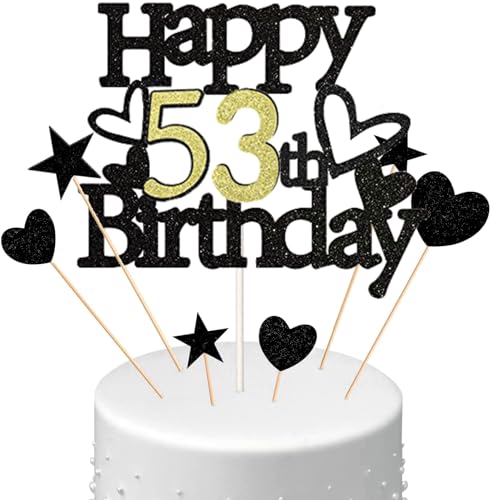 Glitter cake topper 53rd birthday balloons confetti for birthday cake decoration 53 years women