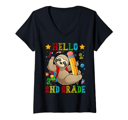 The sale price of Womens cute hello 2nd grade sloth animal back to school kids girls v-neck t-shirt has remained stable at in recent times, there has been no change. As for offers on this product from abab-sloth-lovers-second-grade-first-day-of-school, the price of is similar in all stores in the network, without major differences.