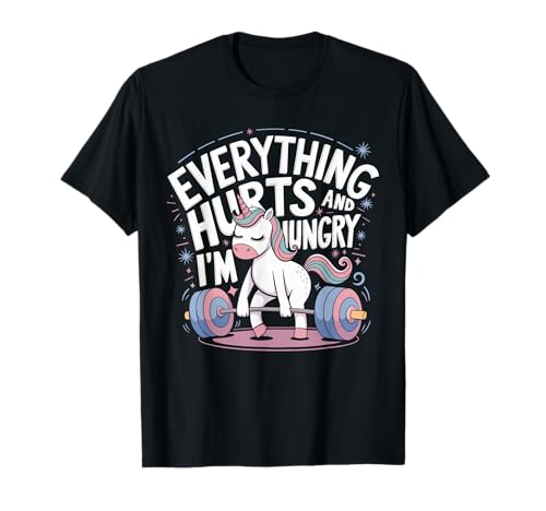 The sale price of Everything hurts and i'm hungry funny workout gym fitness t-shirt has remained stable at in recent times, there has been no change. As for offers on this product from everything-hurts-workout-gym-fitness-unicorn, the price of is similar in all stores in the network, without major differences.