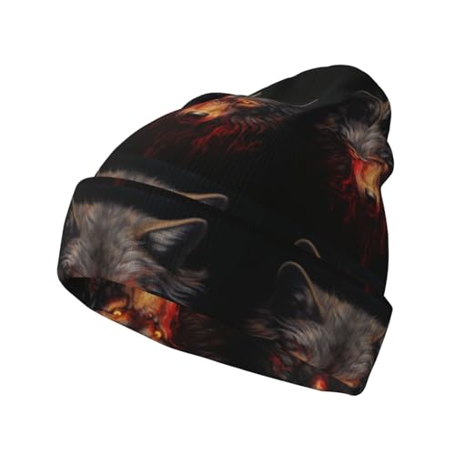 Angry red wolf mens womens beanie hat