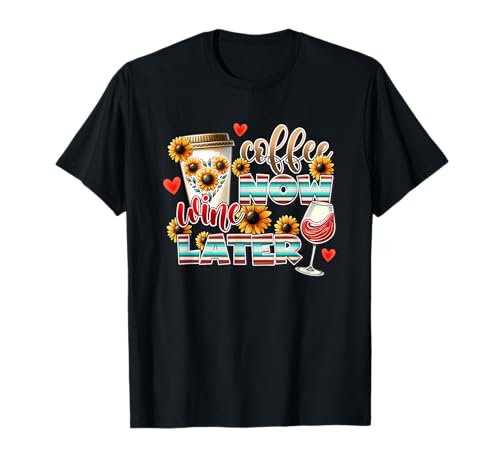 Coffee now wine later sunflower humor t-shirt