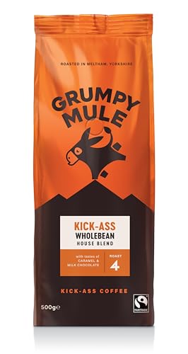 Grumpy mule kick-ass house blend whole coffee beans with notes of caramel and milk chocolate 500 g