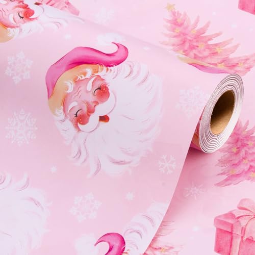 Cute laughing santa claus and christmas tree design baby pink gift wrap paper