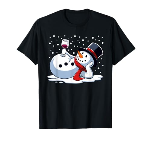 Christmas wine snowman drinking alcohol funny xmas women men t-shirt