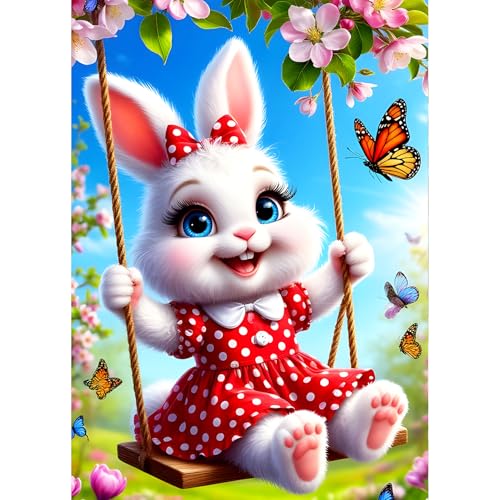 Diy swinging rabbit diamond art kit for adults beginners