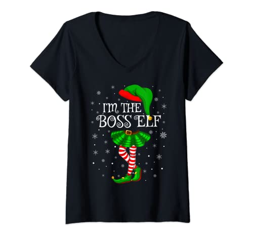 Womens family matching women girls i'm the boss elf christmas v-neck t-shirt