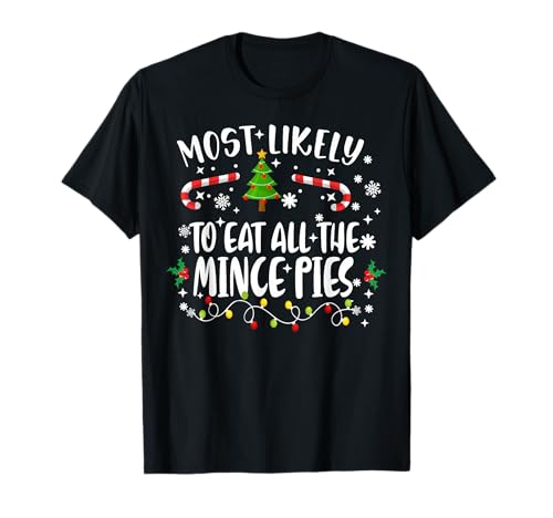 Christmas family funny most likely to eat all the mince pies t-shirt
