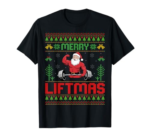 Merry liftmas santa weightlifting bodybuilder ugly christmas t-shirt