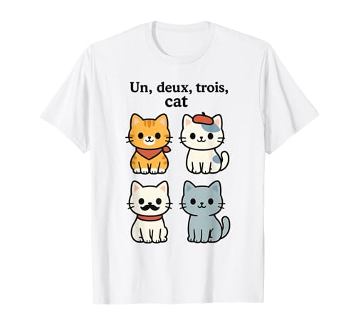 Un deux trois cat cute french cat pun t-shirt