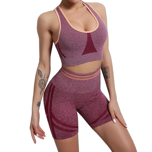 The sale price of Women yoga outfit workout set 2 pieces seamless sports bra gym shorts sets tracksuits set activewear clothes wine red l has remained stable at in recent times, there has been no change. As for offers on this product from dohomiryo, the price of is similar in all stores in the network, without major differences.