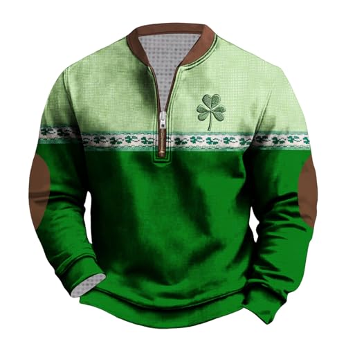 Patrick's day sweatshirt uk clearance retro green irish jumper clover shamrock printed pullover zip up blouse long sleeve shirt round