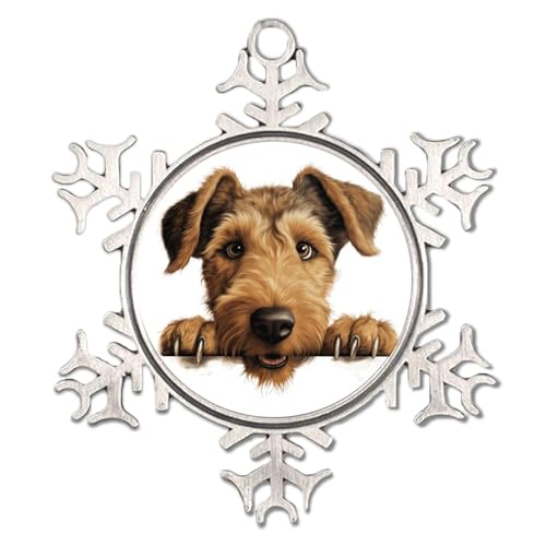 Peeking dog welsh terrier white snowflake ornaments round christmas tree ornament cartoon funny dog decorative keepsake cartoon cute animal puppy collectible gift for festive holidays home decor