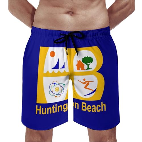 Flag of huntington beach california men's swim trunks soft beach shorts summer bathing suit swimwear with pockets l