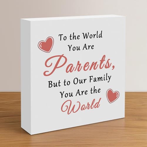 Parents gift from son daughter parents presents for anniversary wooden desk sign decor for home living room family decor gift for mom dad mother's day father's day sign for mom and dad