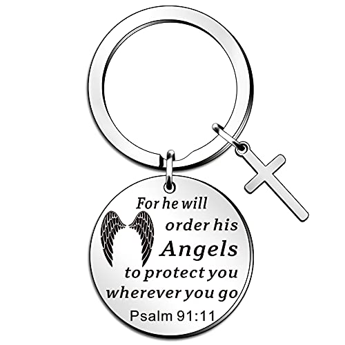 Bible verse keyring christmas religious faith gifts for women men easter prayer christian keyring for him her angels to protect you wherever you go thanksgiving