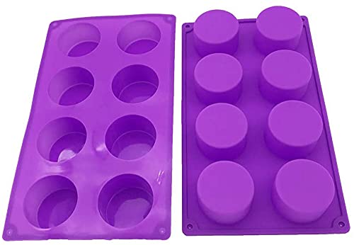 (2 Pack) 8-Cavity Round Silicone Mold for Soap, Cake, Bread, Cupcake, Cheesecake, Cornbread, Muffin, Brownie, and More