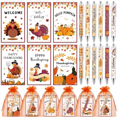 30 sets thanksgiving pens bulk thanksgiving gift set fall pens autumn gifts fall party favors pumpkin turkey memo pad employee appreciation gift for coworkers teacher friends