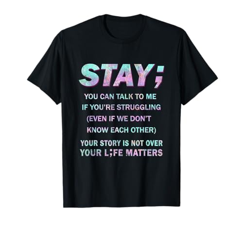 Everything you need to know about Suicide prevention awareness shirt stay your life matters t-shirt on this page so you can find the best option by price. On sale for £ to purchase available in Amazon. £ is a good price to buy and the best available today . We would appreciate it if you value your experience with Suicide prevention awareness shirt stay your life matters t-shirt, leave your review in the comments.