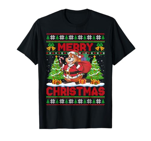 Beaver xmas tree lights ugly santa beaver christmas t-shirt