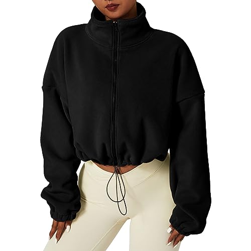Graphic sweat shirts women women's full zip fleece short jacket warm winter long sleeve stand collar crop coat boyfriend oversized sweater