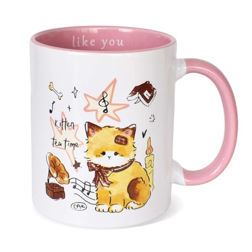 Ceramic cup with musical notes cute kitten design for coffee tea