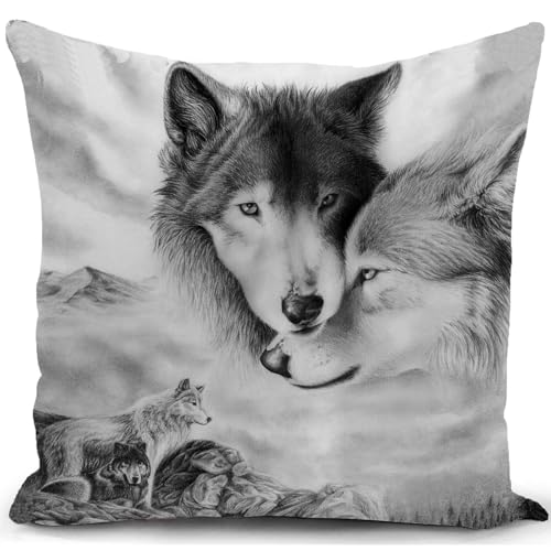Wolf cushion cover wolf gifts decorations throw pillow case decor home for livingroom couch sofa 18x18
