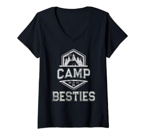 The sale price of Womens vintage camp besties camping squad summer campsite friends v-neck t-shirt has remained stable at in recent times, there has been no change. As for offers on this product from team-bff-campground-queen-2023, the price of is similar in all stores in the network, without major differences.