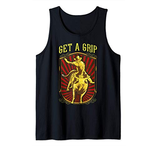 Get a grip bullrider funny competitive bullriding pun tank top