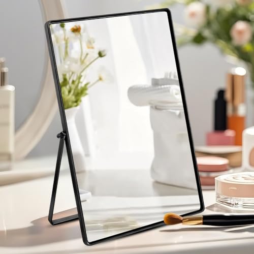 Makeup mirror rectangular vanity mirror large cosmetic vanity mirror metal frame with stand folding & adjustable hd definition countertop tabletop mirrors for vanity dresser