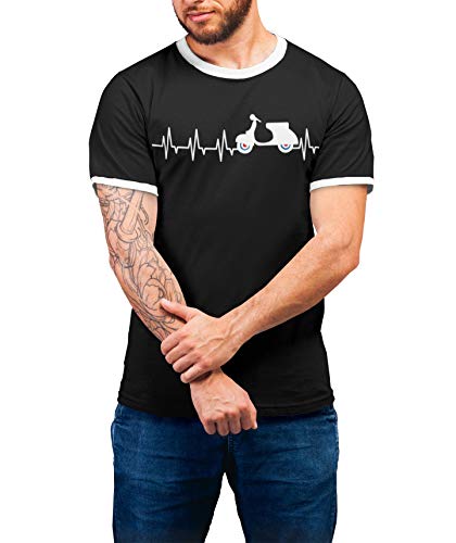Retro classic scooters ringer organic cotton t