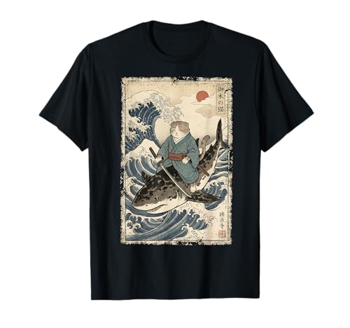 Data sheet and information on Japanese samurai cat riding shark vintage ukiyo-e t-shirt in our search engine, so you don't have to go store to store. The purchase price is £ and has availability at the best price in Amazon. £ is a price on offer, highly recommended . The comments are very useful to know the product, do not forget to leave your comments.