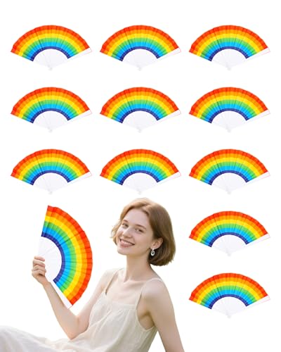 12 pack rainbow folding fans pride decorations pride fan gay lesbian wedding pride decor lgbt pride month parade accessories party favors stuff hand fans for women men