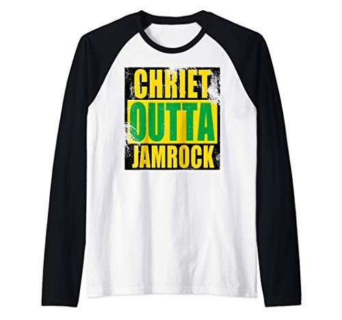 Straight outta jamaica in patois chriet outta jamrock raglan baseball tee