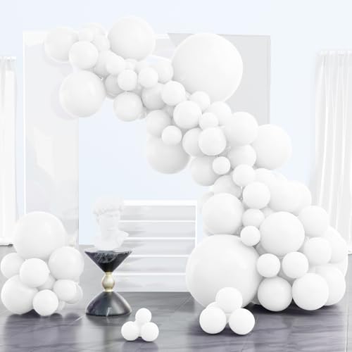 White balloons 102pcs different sizes pack of 18 12 10 5 inch matte white latex balloon arch kit garland for wedding bridal graduation baby shower birthday party decorations white-y13