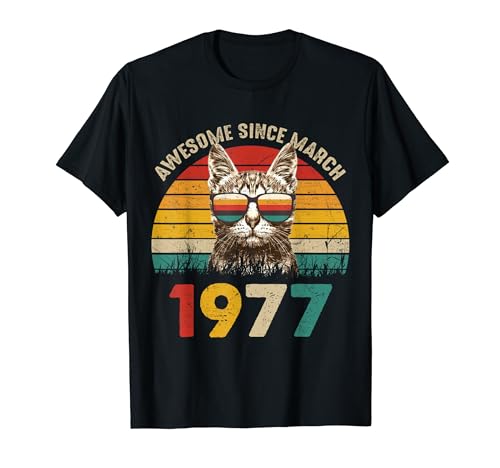 The sale price of Awesome since march 1977 vintage cat 47th birthday t-shirt has remained stable at in recent times, there has been no change. As for offers on this product from havous-47th-birthday-march, the price of is similar in all stores in the network, without major differences.