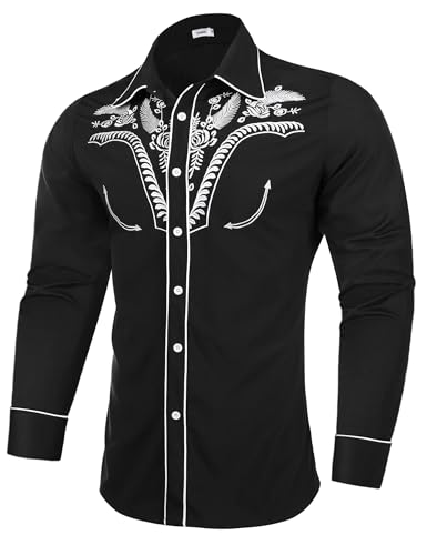 You already know the Men's shirts long sleeve casual vintage floral embroidery button down western shirts regular fit?