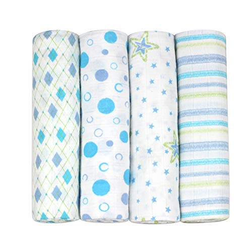 J & alex's 100% cotton muslin swaddle blankets in little gentleman 4 count with rockin' green laundry soap by j & alex
