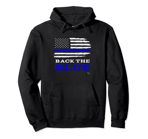 Thin blue line american flag distressed pullover hoodie