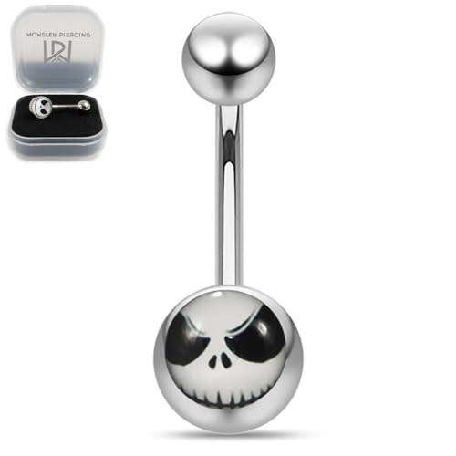 Jack face print 316l surgical steel 14 gauge banana belly bar jewellery