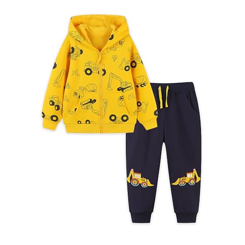 Toddler boys clothes sets dinosaur digger rocket outfits kids long sleeve jumper sweatshirt&pants jogger clothing set baby 2 pieces crewneck cotton winter outfit set age 1-7 years old