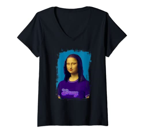 Womens mona lisa with retro groovy v-neck t-shirt