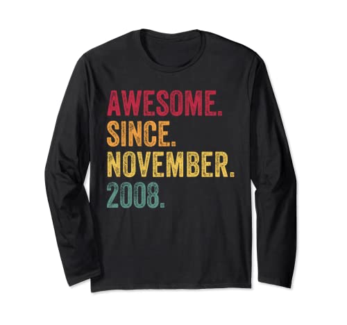 Awesome since november 2008 15th birthday gift 15 years old long sleeve t-shirt