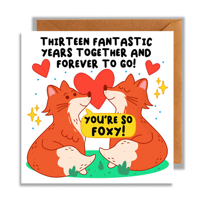 You can buy 13 year anniversary card online in our offer comparator, with all the data and offers on the network. It is available for £ to buy with the security of eBay and its customer service. £ is a very good price, available today . Please comment on the product if you already know it, you will help others in their purchase decision.