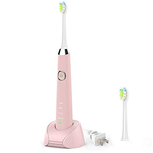 Cepillo de dientes eléctrico recargable 4 modos impermeable 1 cabezal de recambio estuche usb rosa