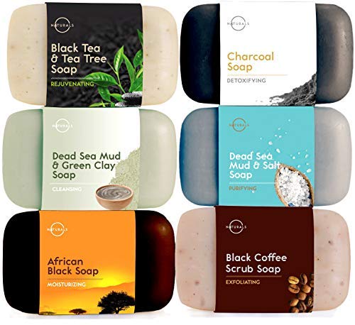 O naturals confezione dei top 6 saponi neri 100% biologici vegano con oli essenziali terapeutici cura brufoli ripara la pelle idrata pulizia profonda lussuoso viso e corpo donna uomo 6pz 113gr ogniuno